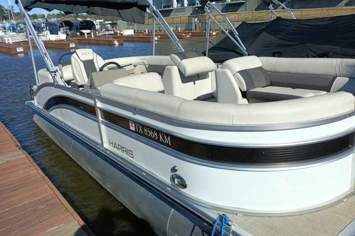 This is a Harris Cruiser 230. Its a 23 foot, 13 passenger, 200HP Tri-toon. This boat has plenty of room and power to meet your occasion. The tritoons make this a very nice ride. This boat is equipped with a Bluetooth radio with 6 speakers. Up to 13 Passenger or 1795lbs of weight.