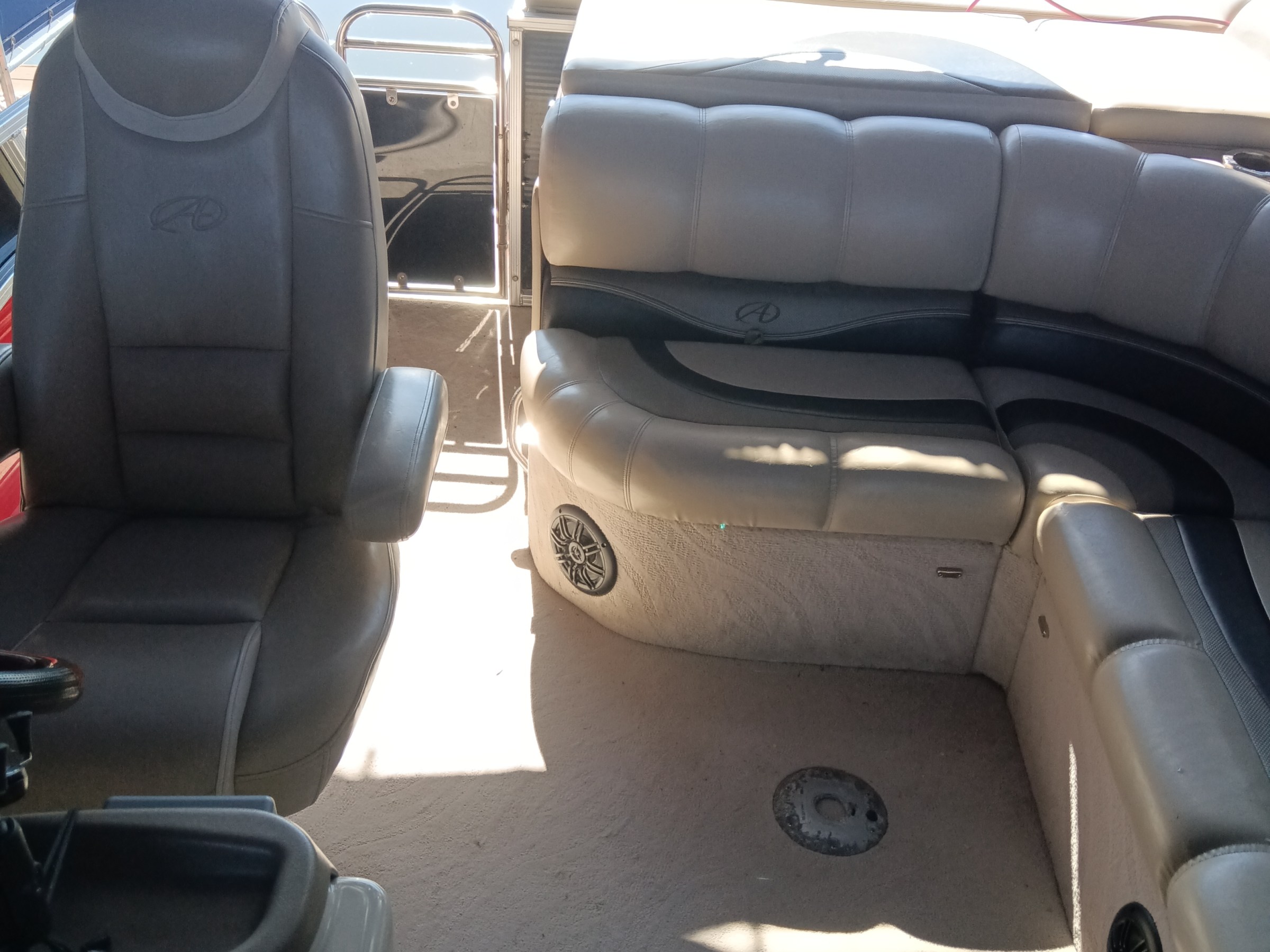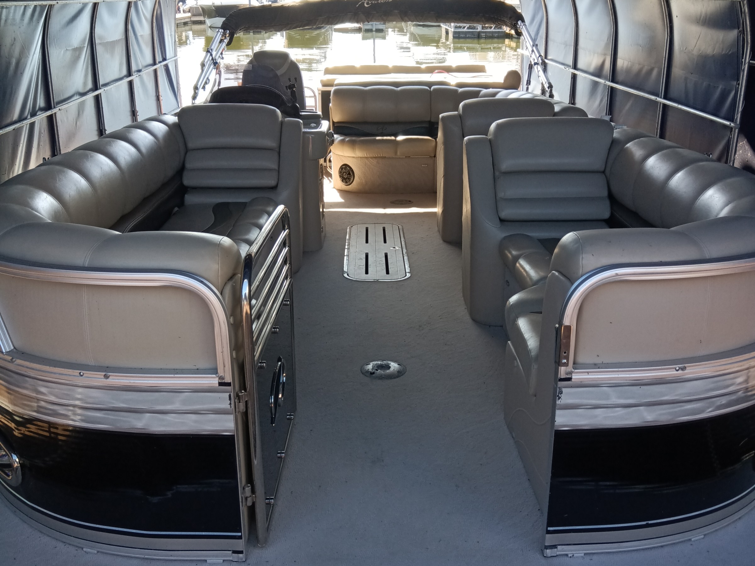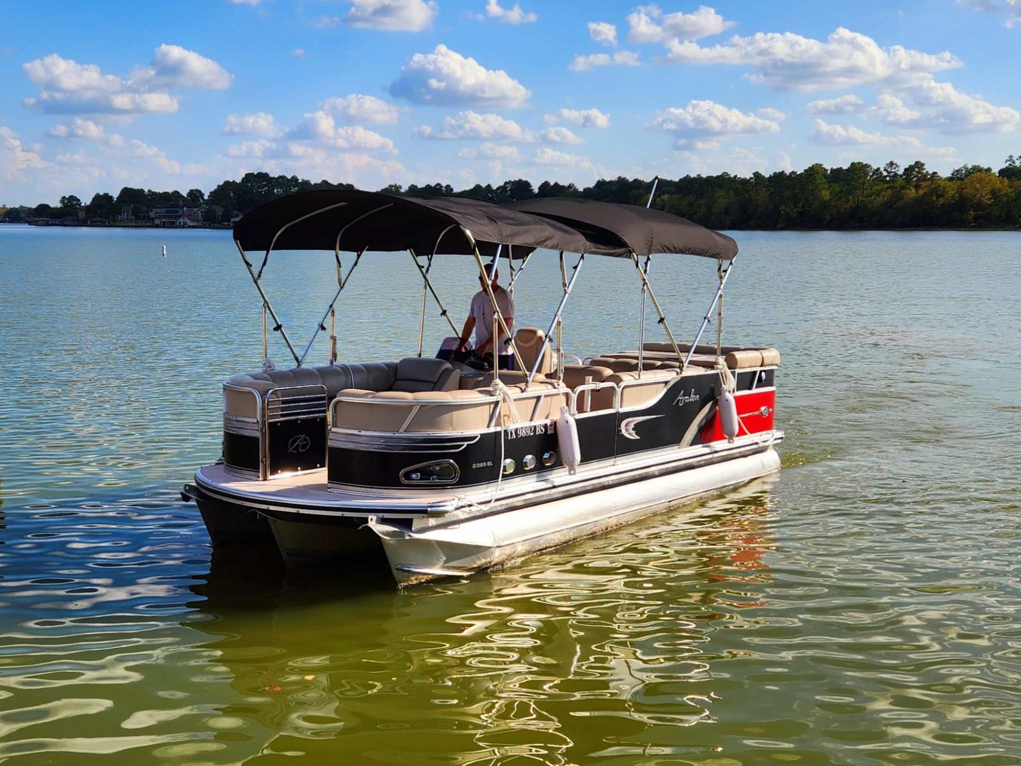 This Avalon Paradise 2385 EL Tritoon has plenty of room for friends and family plus It has plenty of storage room for your gear. This boat has a double Bimini to keep the hot Texas sun away that can be collapsed to make it 1/2 Bimini or completely down to soak up the sun. It has a great Bluetooth radio for cruising and listening to music. Its equipped with a 150 HP Yamaha that cruises about 29 MPH based on weight and lake conditions.