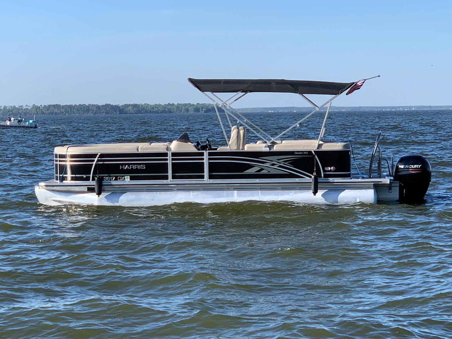 This Harris Cruiser 230 Tritoon has plenty of room for friends and family with its wide open layout from front to back. This boat has a single Bimini to keep to keep you cool in the hot Texas sun. It has a great Bluetooth radio for cruising and listening to music. Its equipped with a 200 HP Mercury that will definitely move across this lake with ease. It will cruise about 38MPH based on weight and lake conditions.