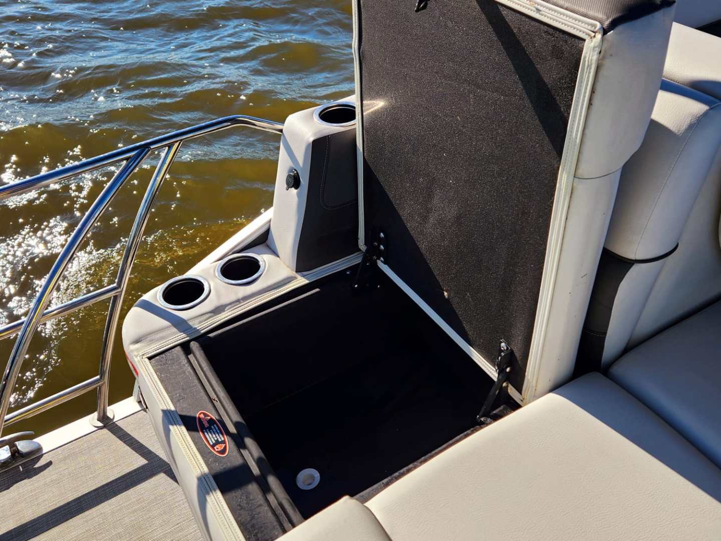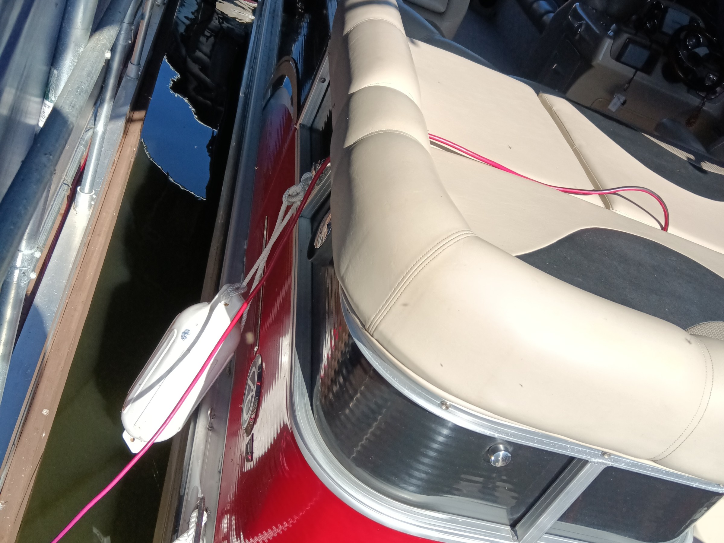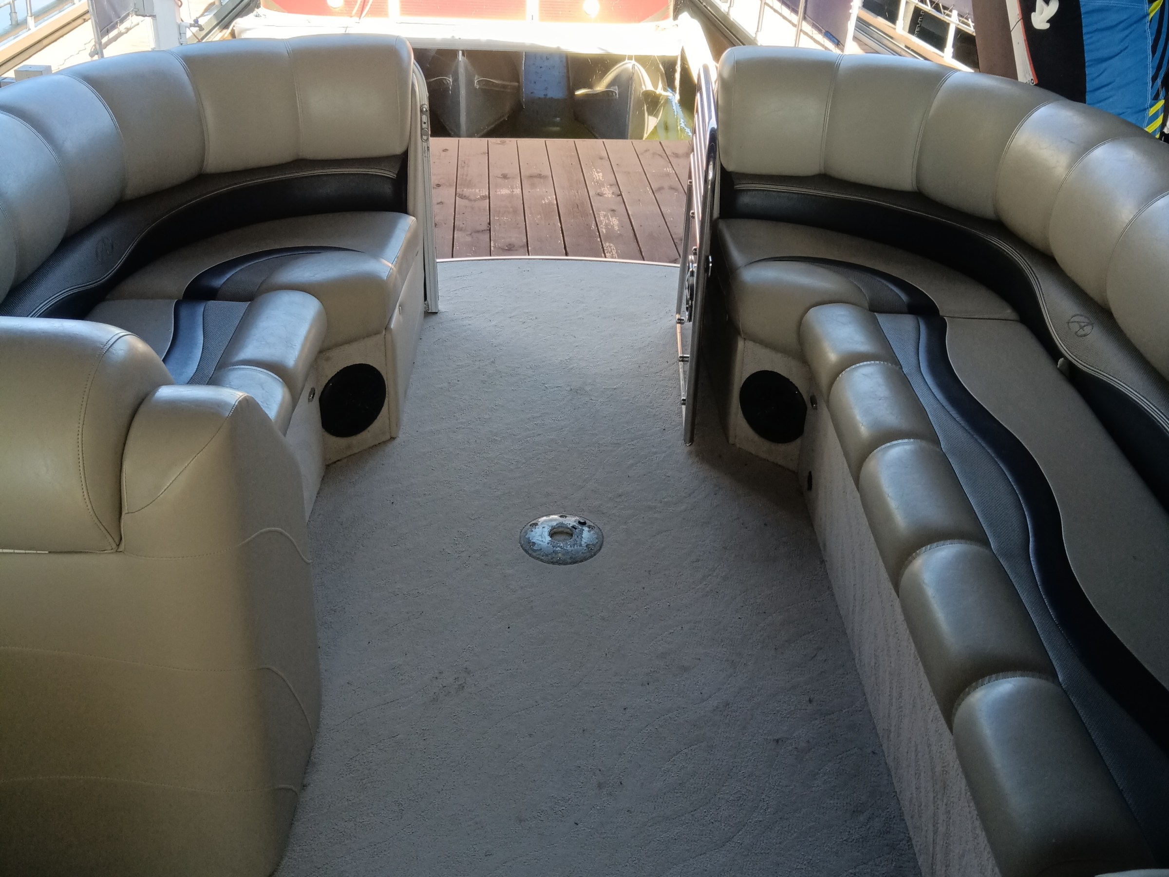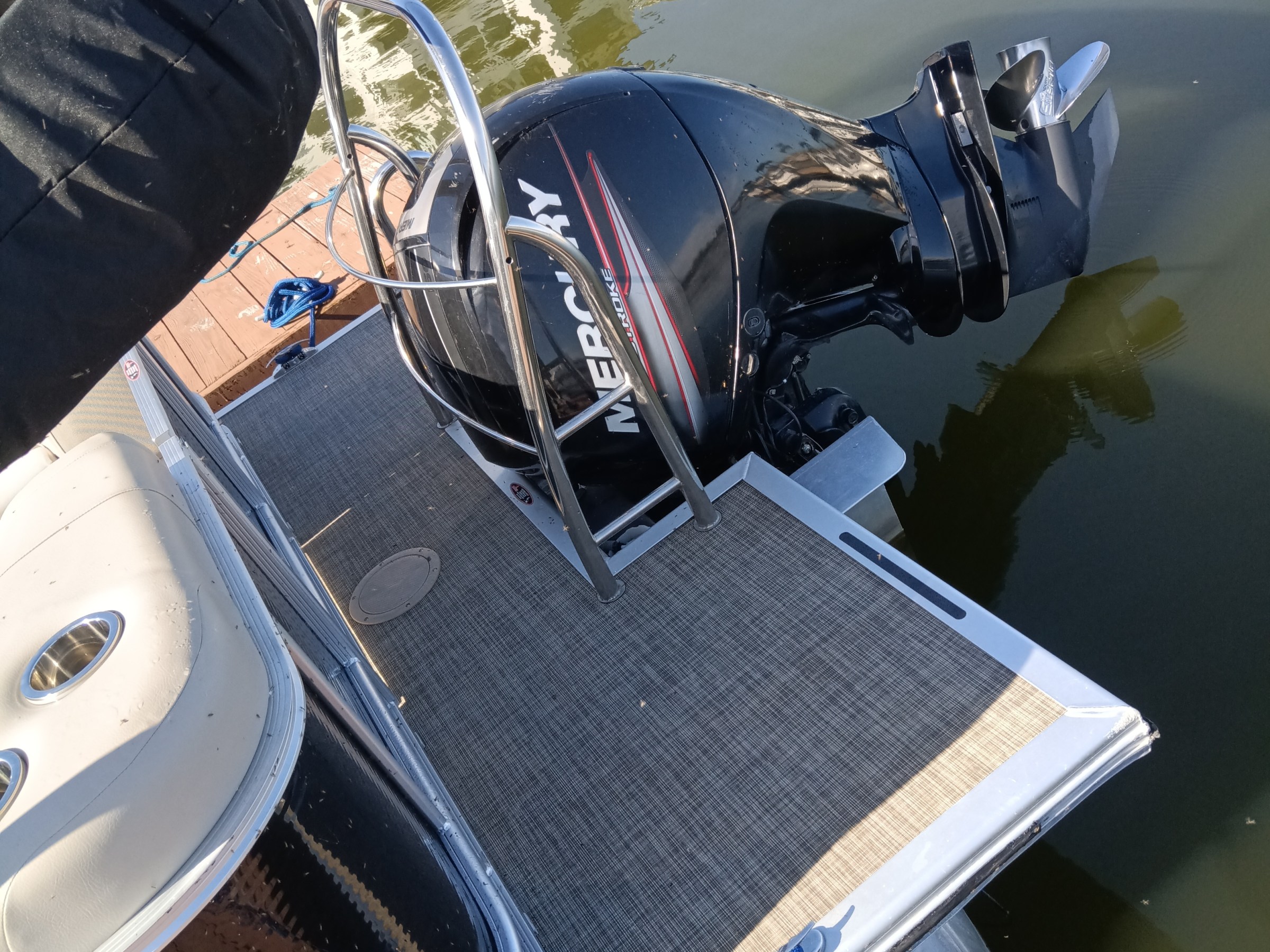 This Harris Cruiser 230 Tritoon has plenty of room for friends and family with its unique layout. This boat has a bench seat that converts to a rear facing seat or completely lie-flat. This boat has a Double Bimini to keep to keep you cool in the hot Texas sun and has a built in cooler to keep your drinks ice cold. It has a great Bluetooth radio for cruising and listening to music. Its equipped with a 175 HP Mercury that will definitely move across this lake with ease. It will cruise about 35MPH based on weight and lake conditions.
